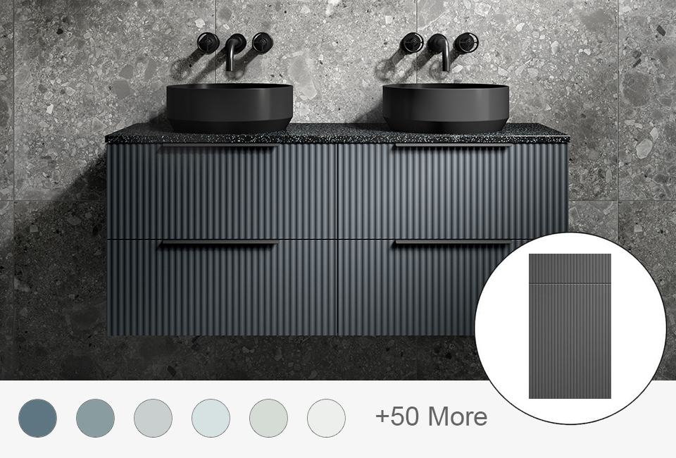 The True Rail system works cleverly with your cabinet to effectively create finger space to make using your bathroom simple.