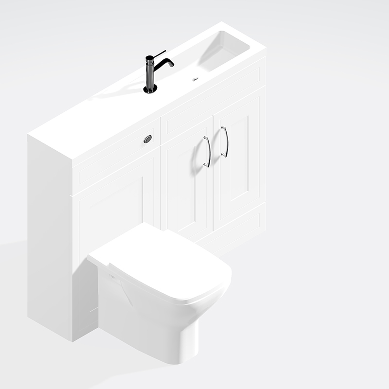 The set consists of a 600mm basin unit and a 500mm WC unit. The external sides of the units are matched to your door choice.
