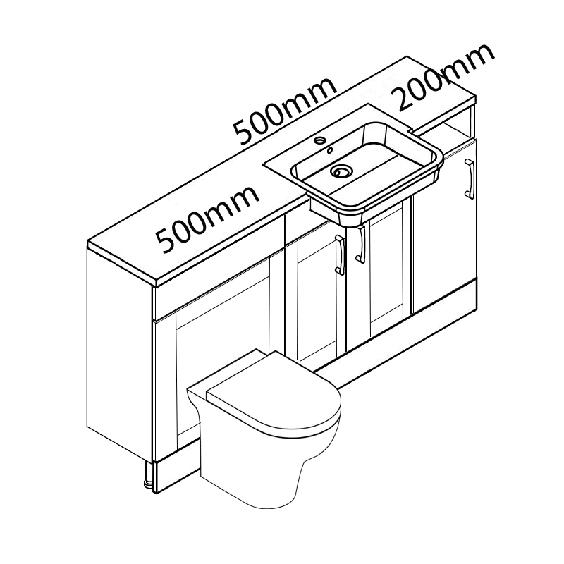 These units can be put into any order you like and not just as per the picture. You get the option of worktops, handles, toilet, basin and cistern.