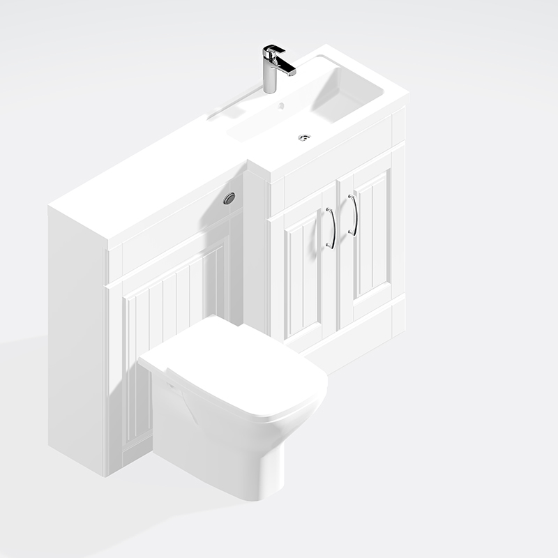 The set consists of a 600mm basin unit and a 600mm WC unit. The external sides of the units are matched to your door choice.