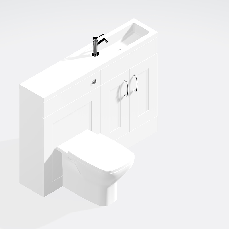 The set consists of a 600mm basin unit and a 600mm WC unit. The external sides of the units are matched to your door choice.