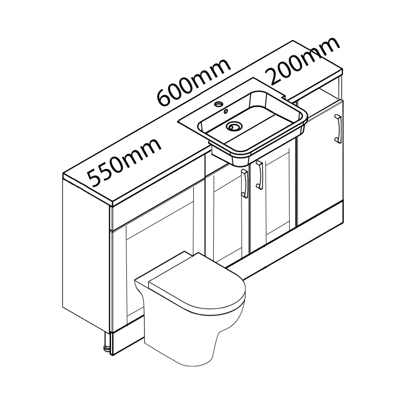 These units can be put into any order you like and not just as per the picture. You get the option of worktops, handles, toilet, basin and cistern.