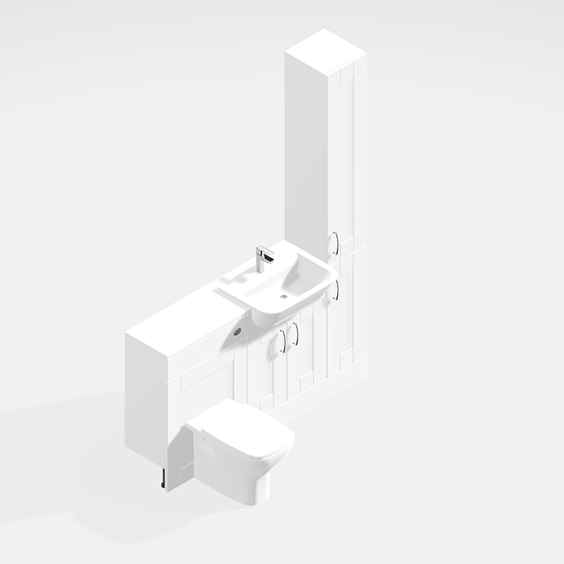 These units can be put into any order you like and not just as per the picture. You get the option of worktops, handles, toilet, basin and cistern.