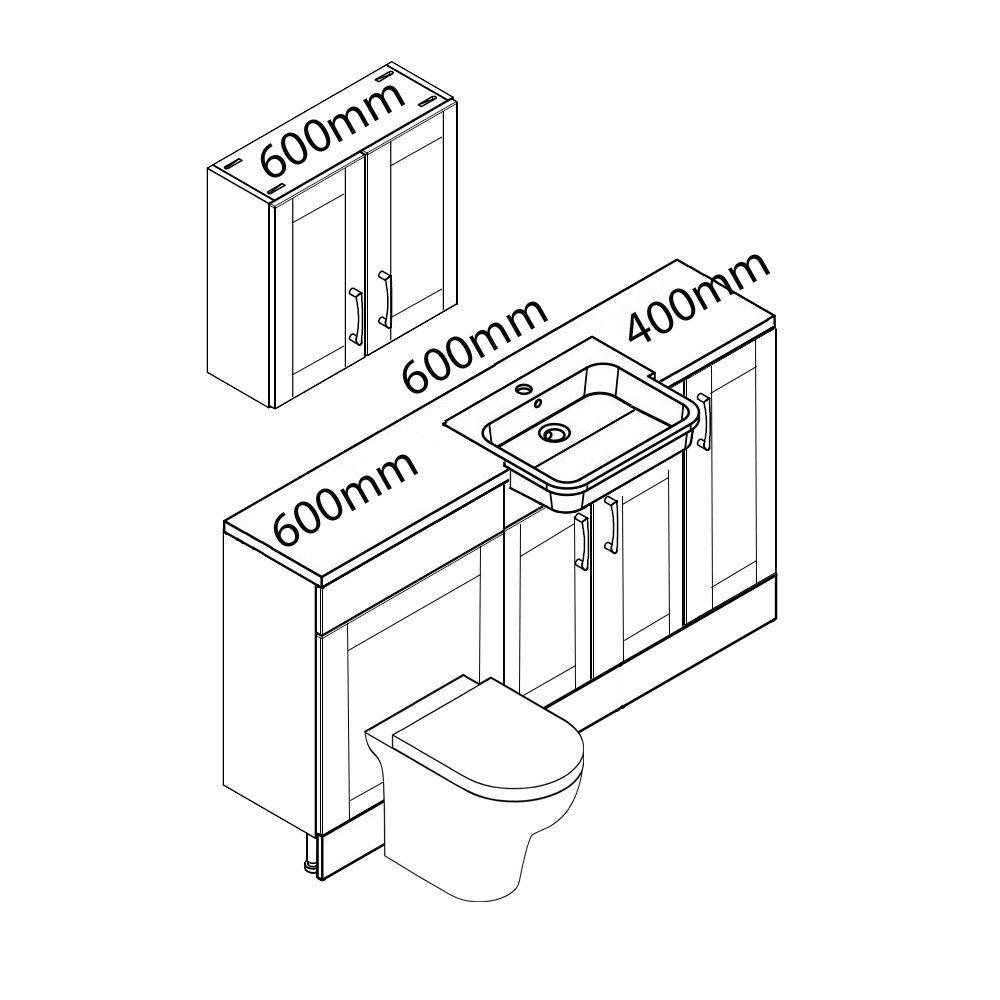 These units can be put into any order you like and not just as per the picture. You get the option of worktops, handles, toilet, basin and cistern.