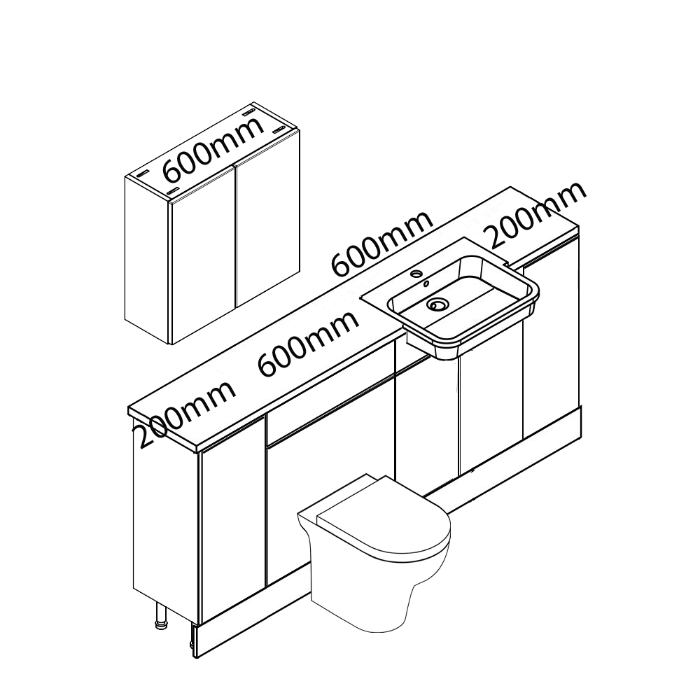 These units can be put into any order you like and not just as per the picture. You get the option of worktops, handles, toilet, basin and cistern.