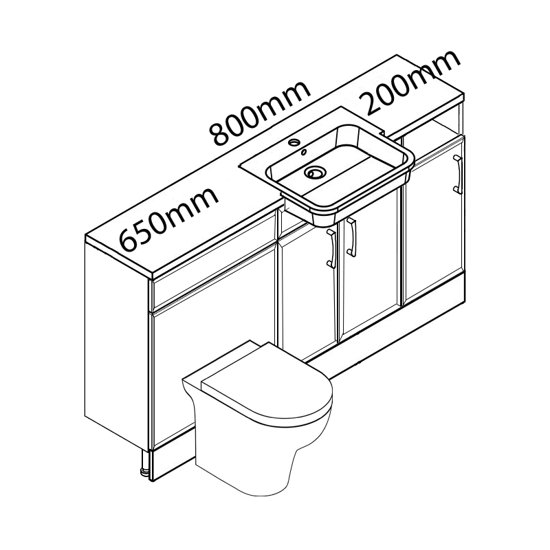 These units can be put into any order you like and not just as per the picture. You get the option of worktops, handles, toilet, basin and cistern.