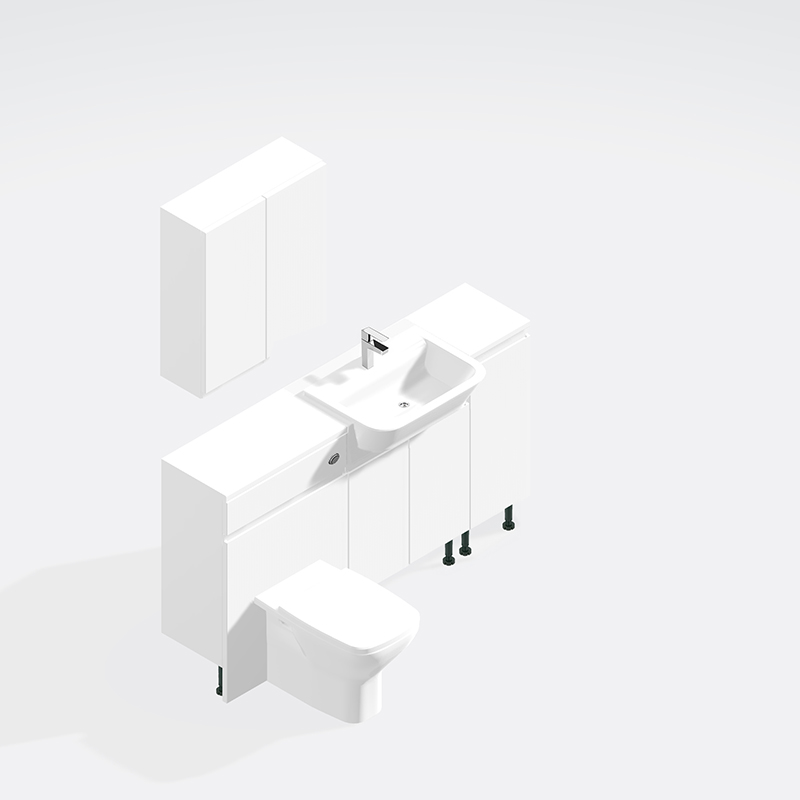 These units can be put into any order you like and not just as per the picture. You get the option of worktops, handles, toilet, basin and cistern.