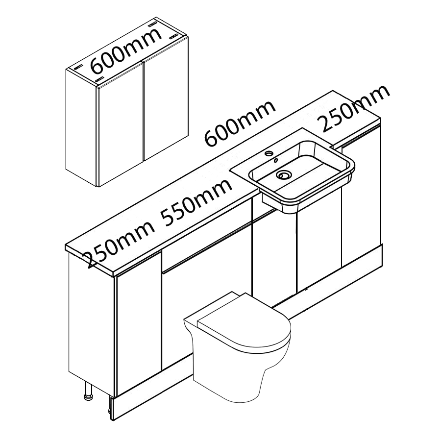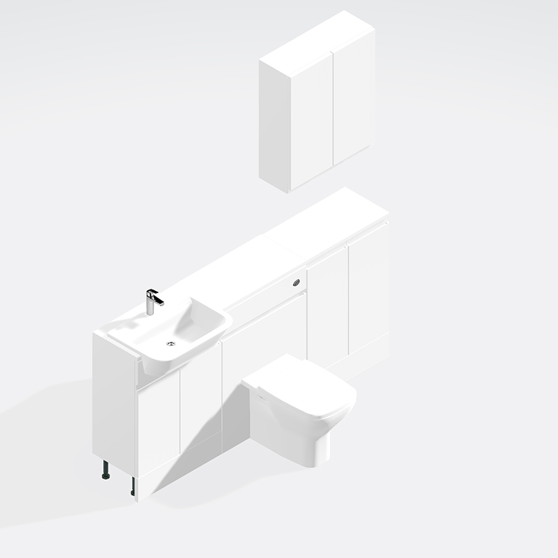 These units can be put into any order you like and not just as per the picture. You get the option of worktops, handles, toilet, basin and cistern.
