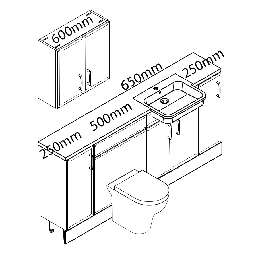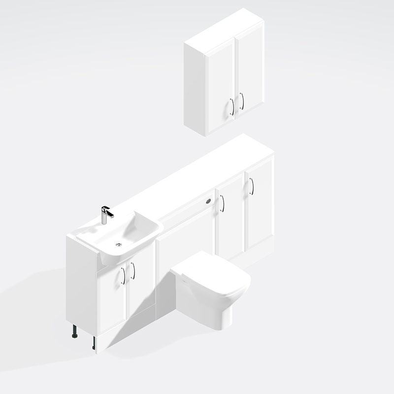 These units can be put into any order you like and not just as per the picture. You get the option of worktops, handles, toilet, basin and cistern.