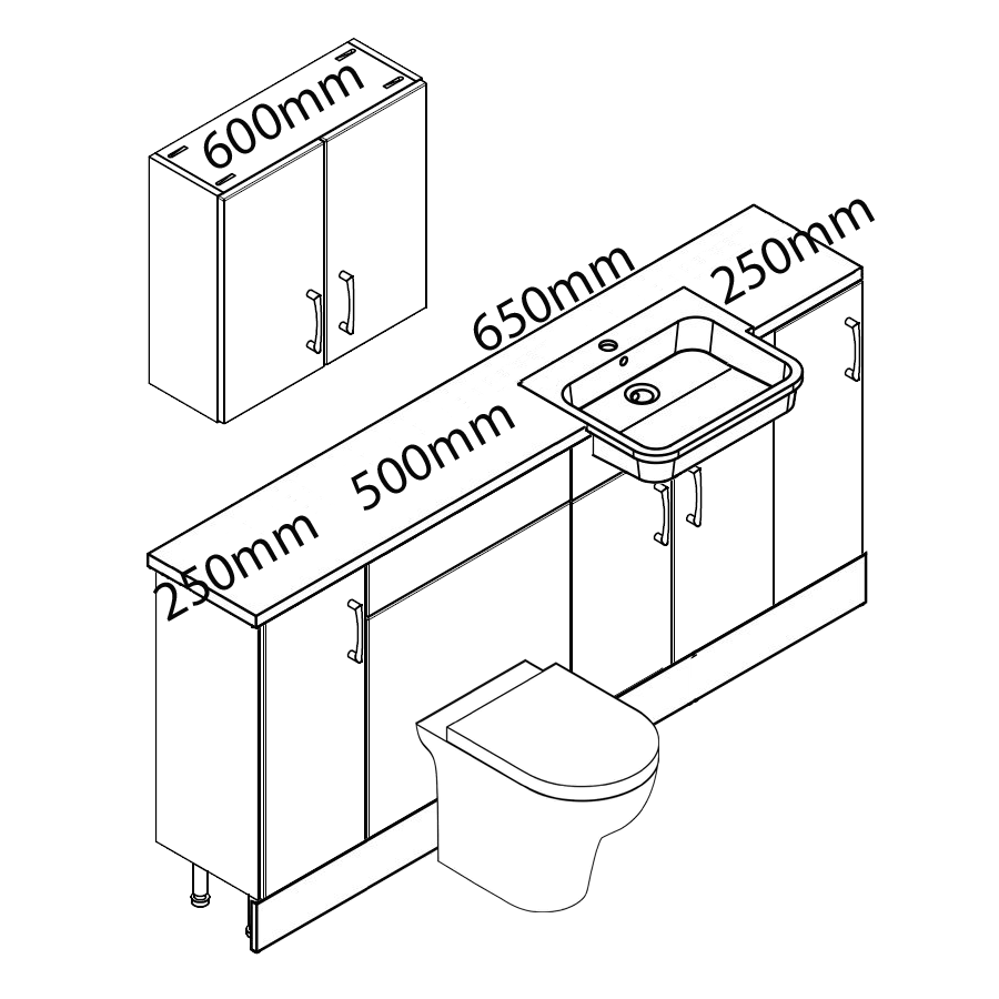 These units can be put into any order you like and not just as per the picture. You get the option of worktops, handles, toilet, basin and cistern.