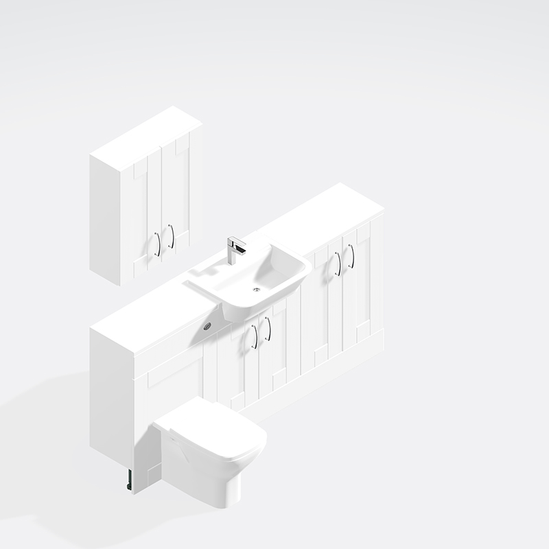These units can be put into any order you like and not just as per the picture. You get the option of worktops, handles, toilet, basin and cistern.