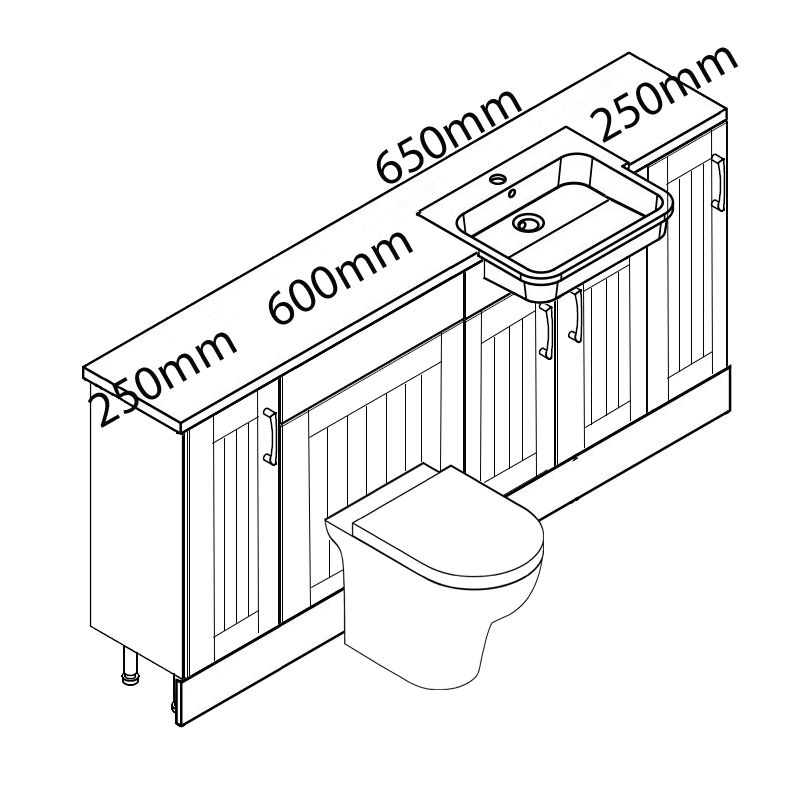 These units can be put into any order you like and not just as per the picture. You get the option of worktops, handles, toilet, basin and cistern.