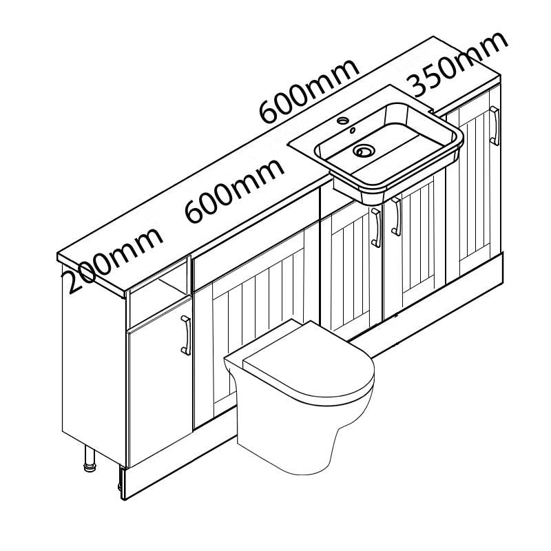These units can be put into any order you like and not just as per the picture. You get the option of worktops, handles, toilet, basin and cistern.