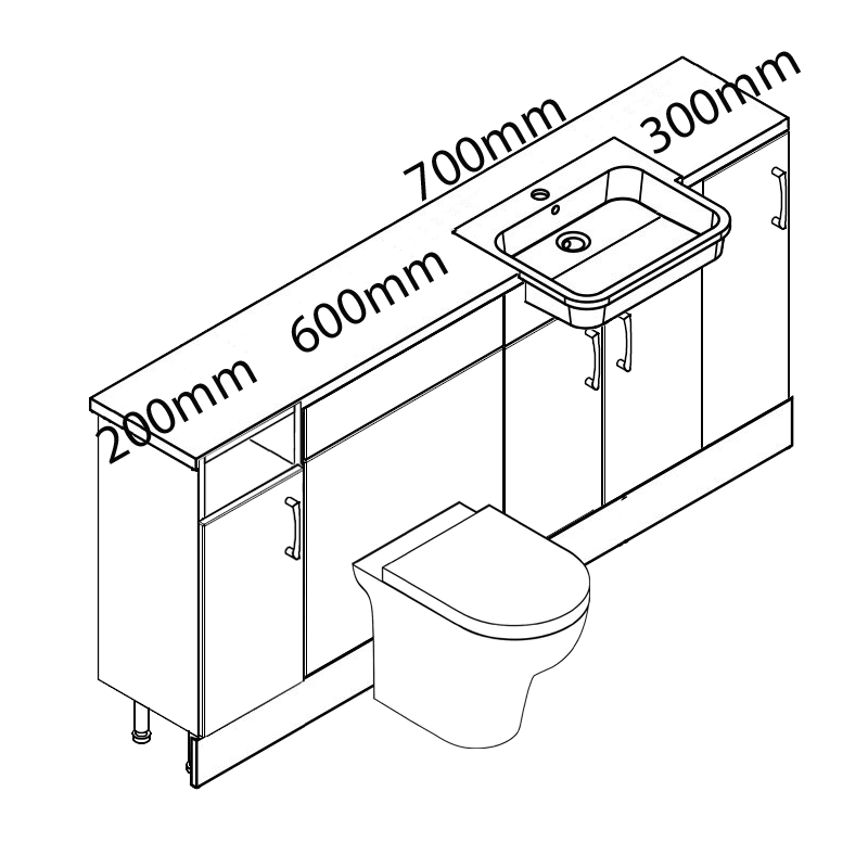 These units can be put into any order you like and not just as per the picture. You get the option of worktops, handles, toilet, basin and cistern.