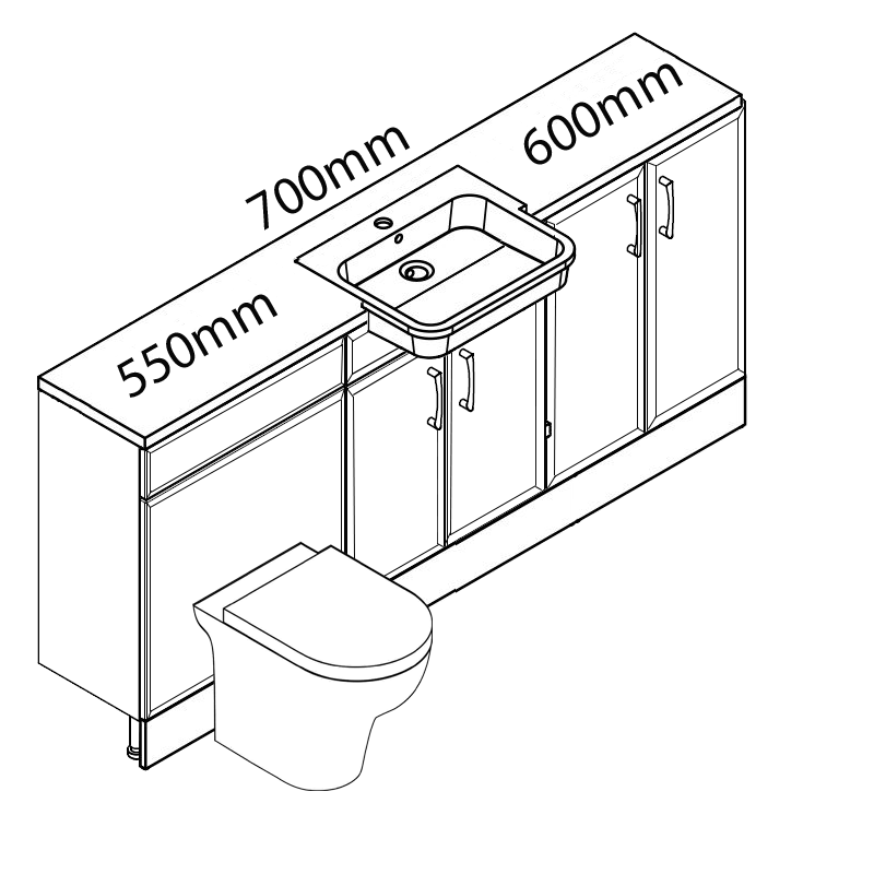 These units can be put into any order you like and not just as per the picture. You get the option of worktops, handles, toilet, basin and cistern.