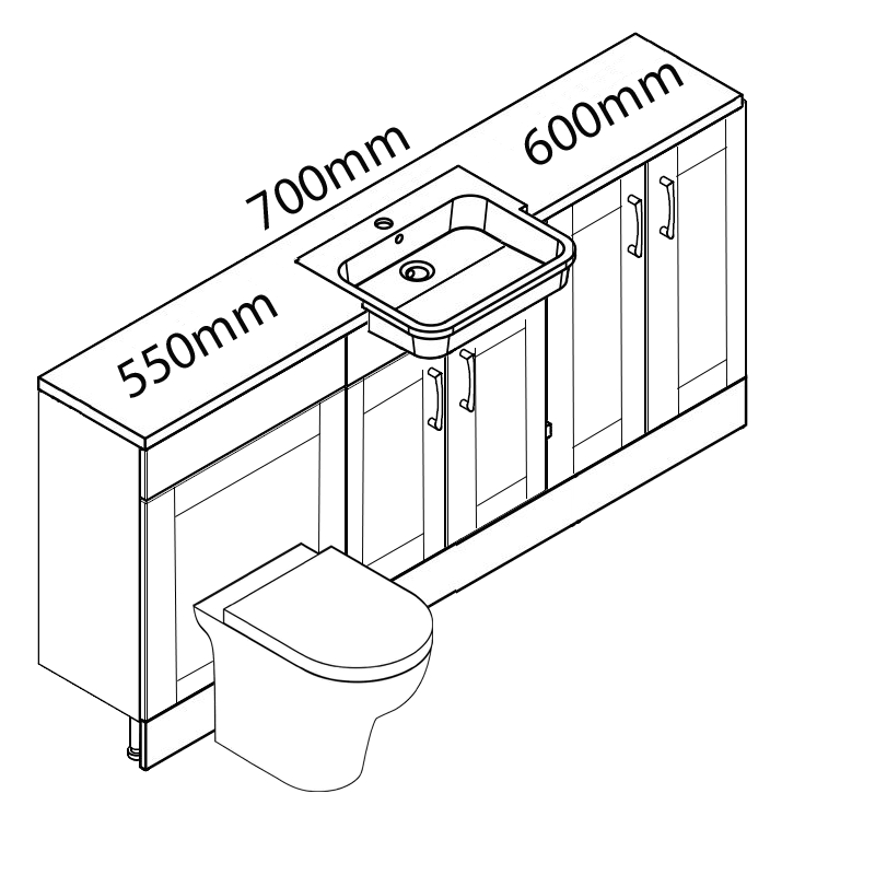 These units can be put into any order you like and not just as per the picture. You get the option of worktops, handles, toilet, basin and cistern.