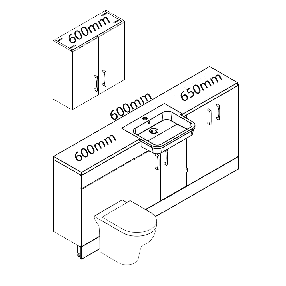 These units can be put into any order you like and not just as per the picture. You get the option of worktops, handles, toilet, basin and cistern.