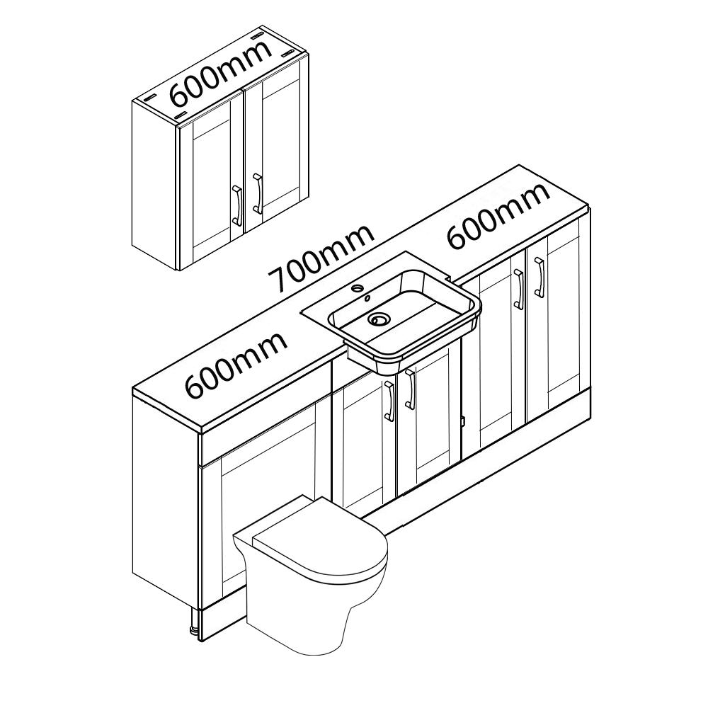 These units can be put into any order you like and not just as per the picture. You get the option of worktops, handles, toilet, basin and cistern.