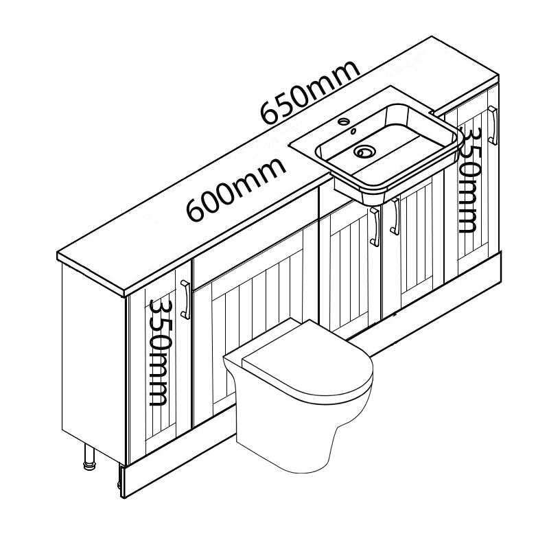 These units can be put into any order you like and not just as per the picture. You get the option of worktops, handles, toilet, basin and cistern.