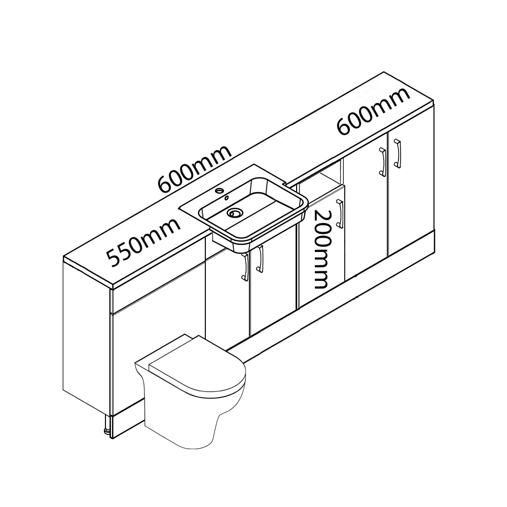 These units can be put into any order you like and not just as per the picture. You get the option of worktops, handles, toilet, basin and cistern.