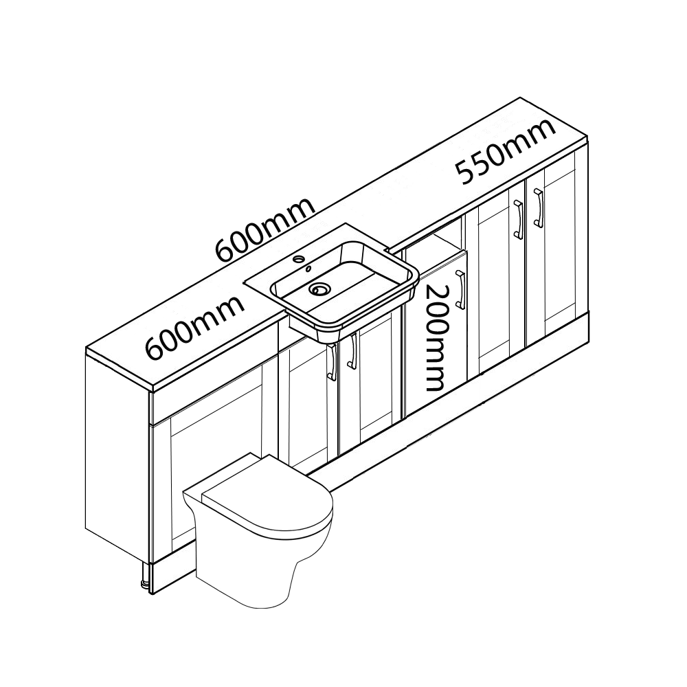 These units can be put into any order you like and not just as per the picture. You get the option of worktops, handles, toilet, basin and cistern.