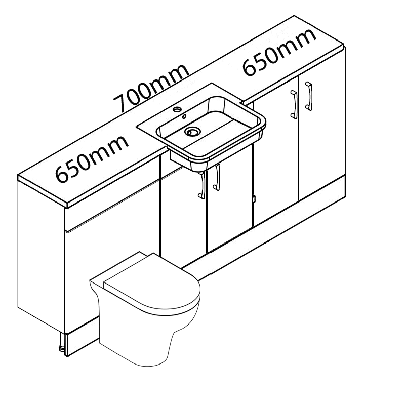 These units can be put into any order you like and not just as per the picture. You get the option of worktops, handles, toilet, basin and cistern.