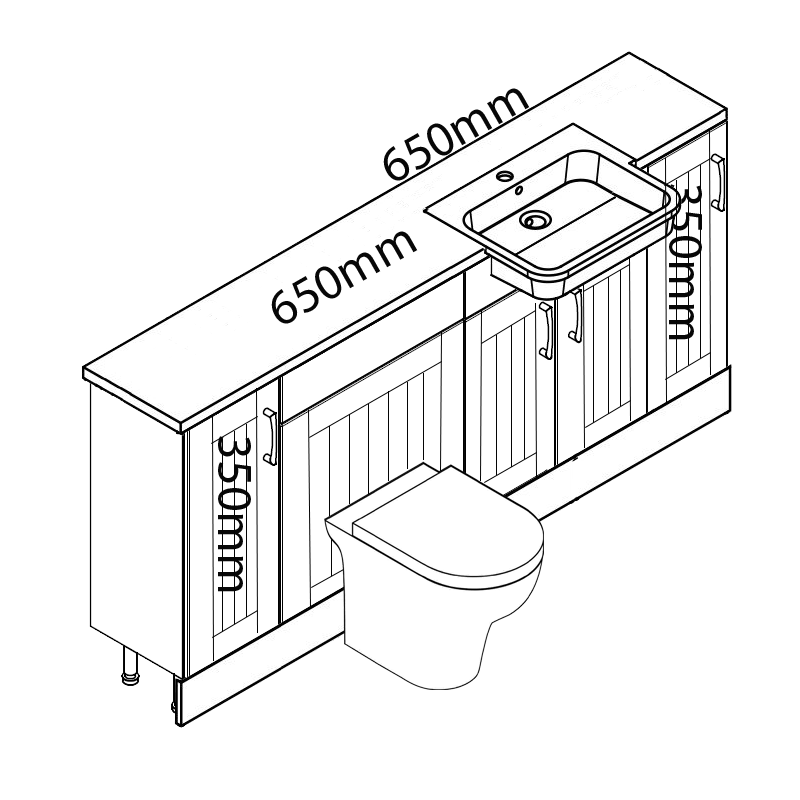 These units can be put into any order you like and not just as per the picture. You get the option of worktops, handles, toilet, basin and cistern.