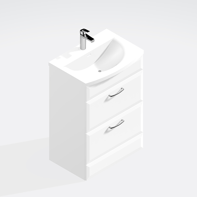 This 2 drawer Floor Standing Vanity Unit with Curved Basin is the perfect addition to any modern bathroom. This contemporary unit comes in a variety of widths from 500mm to 800mm and a single depth of 390mm, allowing you to easily customize it to fit your space. Featuring two drawers for easy storage, this vanity unit offers plenty of storage space. Crafted with high-quality materials, this durable piece is designed to last for years to come, making it a great investment for any bathroom.