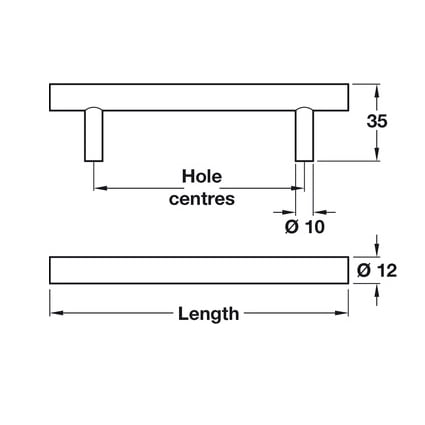 Bar Handle, Zinc Alloy, Fixing Centres 96 mmPolished chrome, fixing centres 96 mm