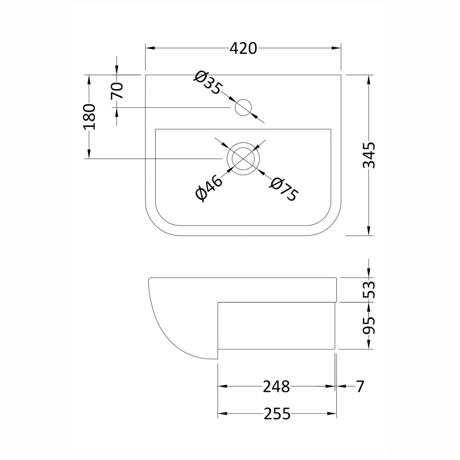 Hudson Reed Aria 420mm 1TH Semi-Recessed Basin – SRB004