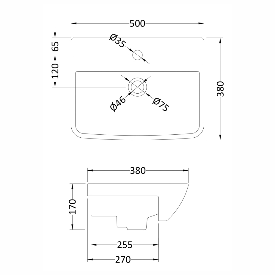 Hudson Reed Lynx 500mm 1TH Semi-Recessed Basin – SRB005
