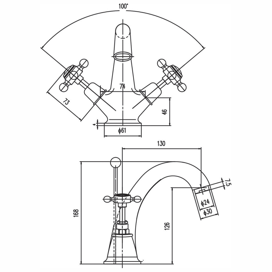 Hudson Reed 3 Tap Hole Basin Mixer - BC407HX