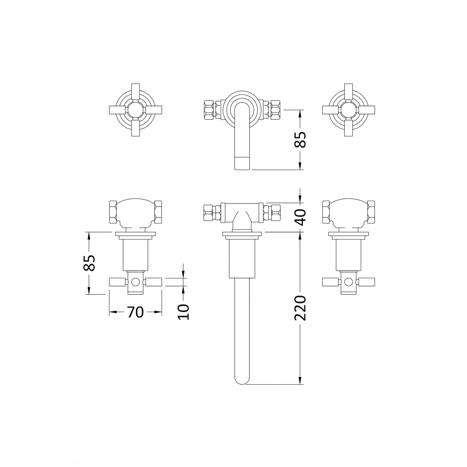 Hudson Reed Tec Crosshead W/H Basin Mixer – Matt Black – TEX417