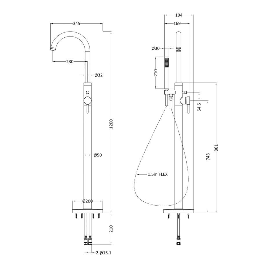 Ideal for use with free standing baths