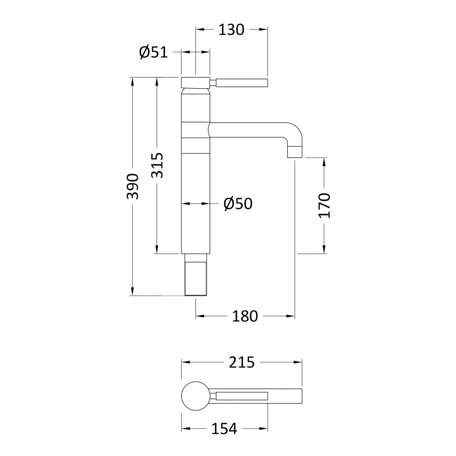 Hudson Reed Tec Single Lever High Rise Mixer S Spout – Matt Black – PN470