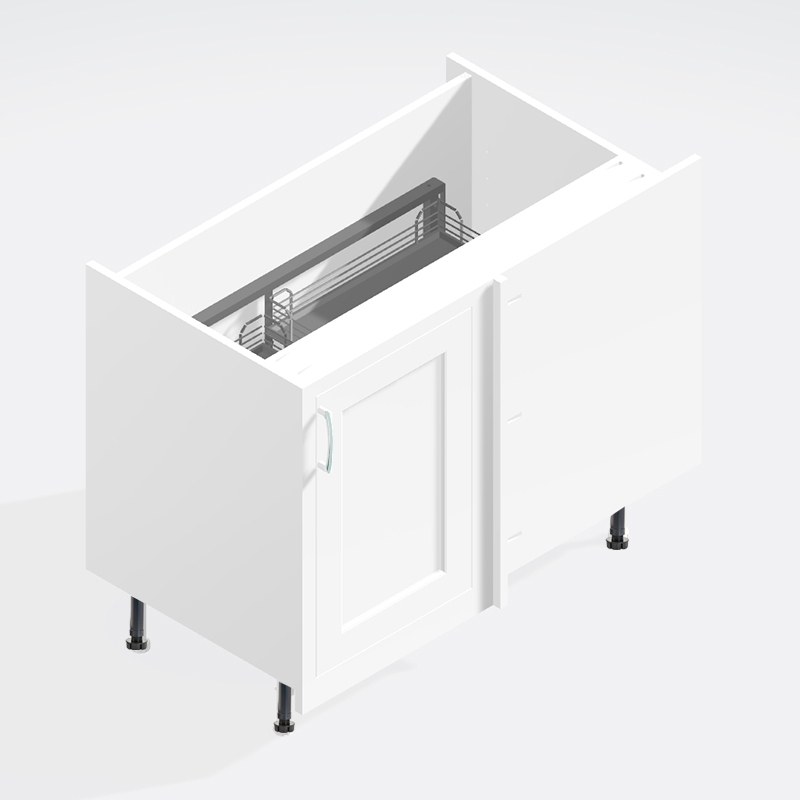 This highline corner base unit with pull out system comes in a variety of door widths from 400mm to 600mm.