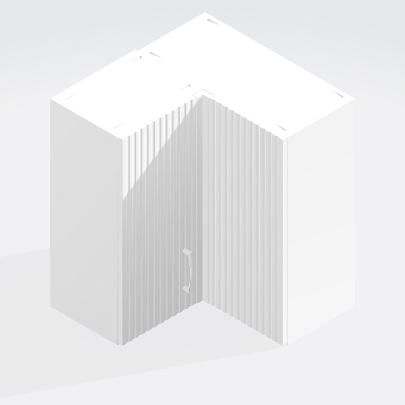 This L-shape corner wall unit comes in a single size of 610mm x 610mm and 3 different heights. You get the option to add a push to open door system for which you won’t need handles on the unit.