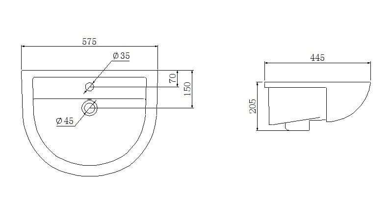 Dunbar Semi Recessed Basin 1 Tap Hole (300mm Deep Furniture Or Deeper)